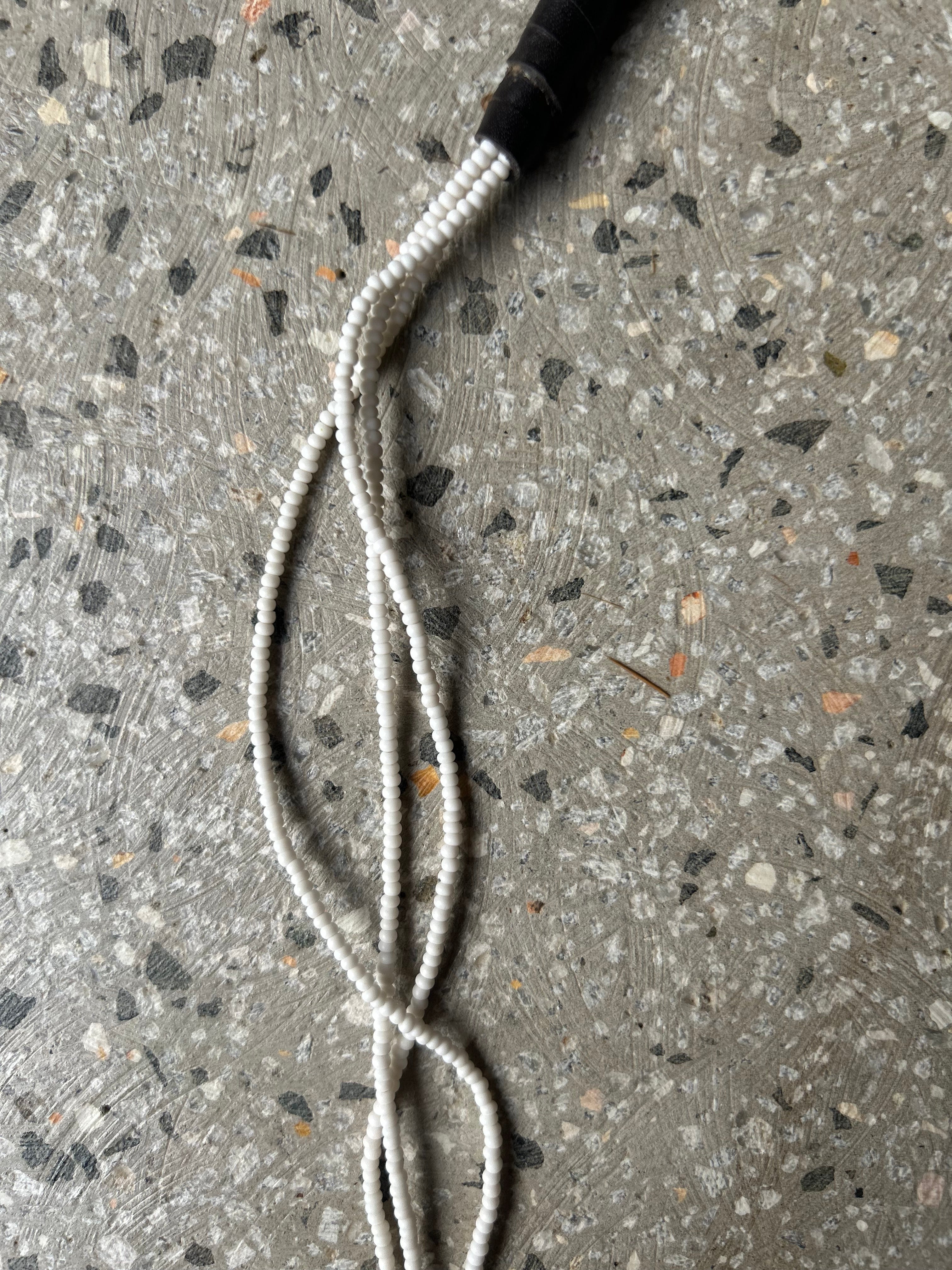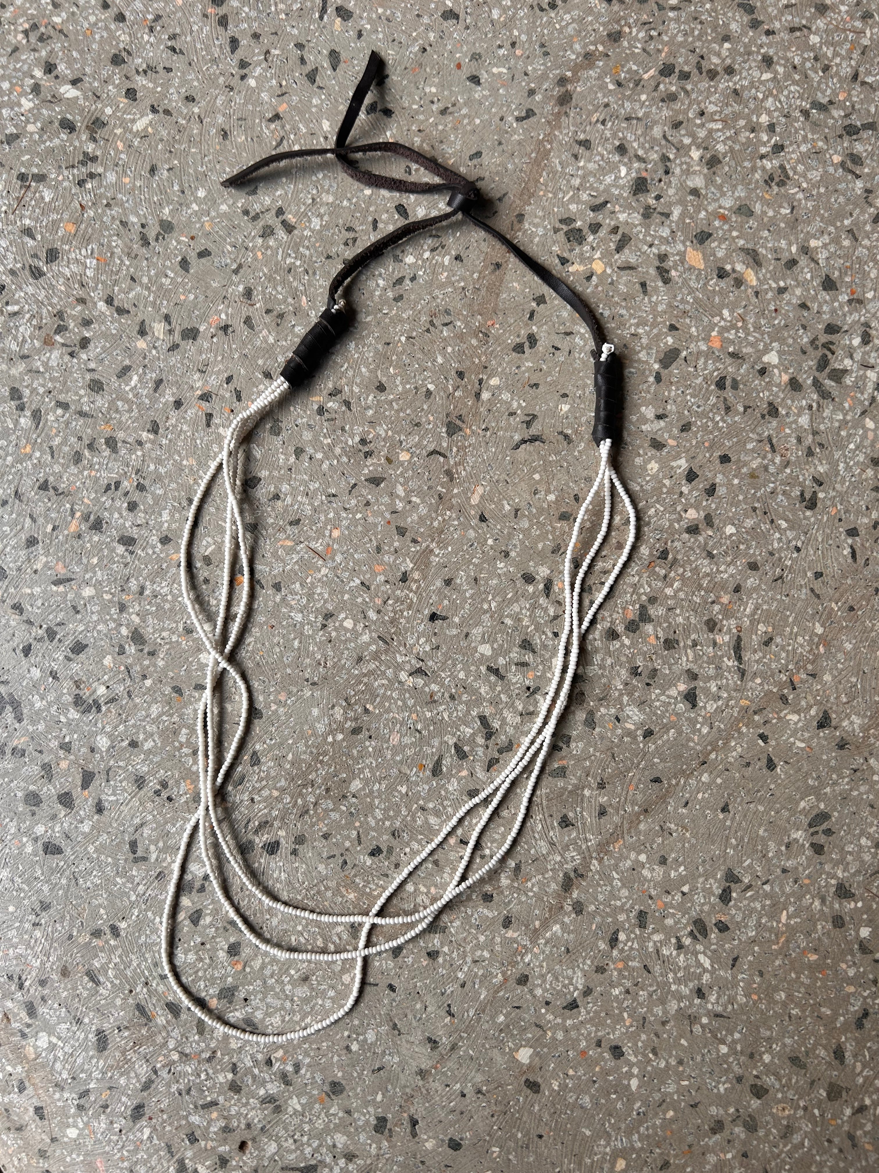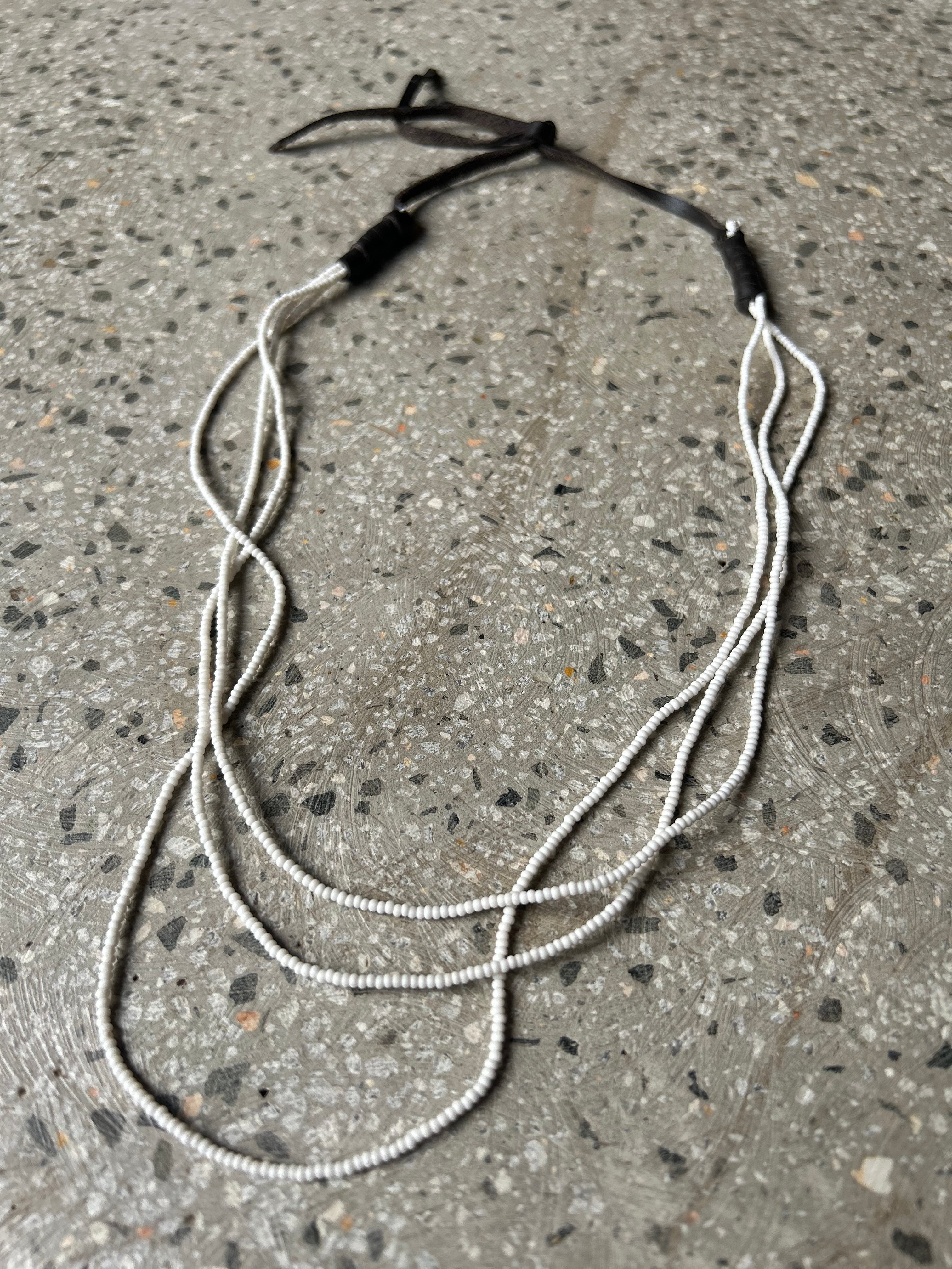 Overview and returns A long necklace of beautifully tactile white clay beads. Handmade in Kenya. Strung on a woven straw. Standard 3-5 days postage within UK is £5. Our...